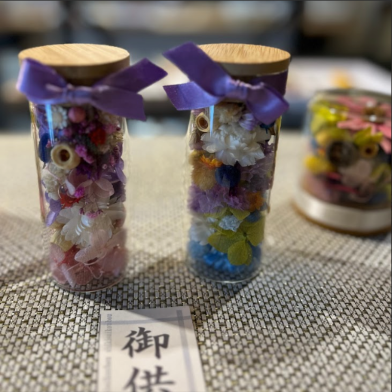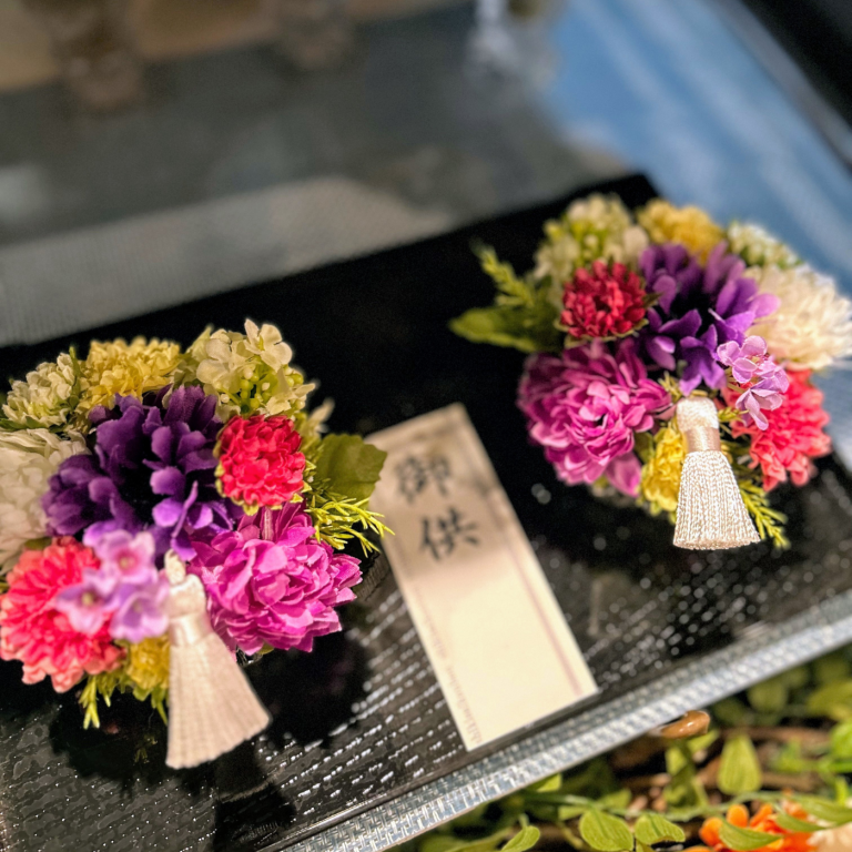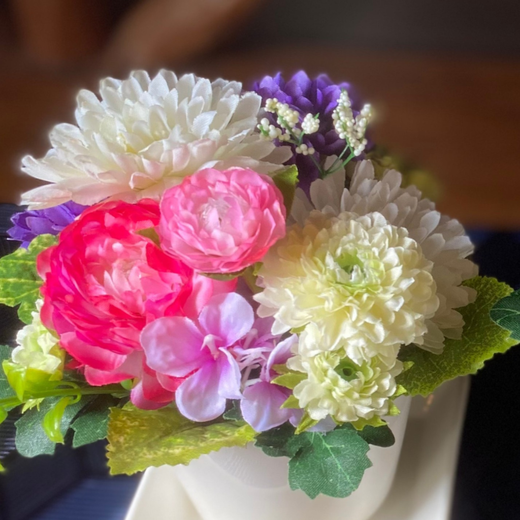お手入れの心配がいらない花材でお作りした、お供え用のアレンジメントです。
